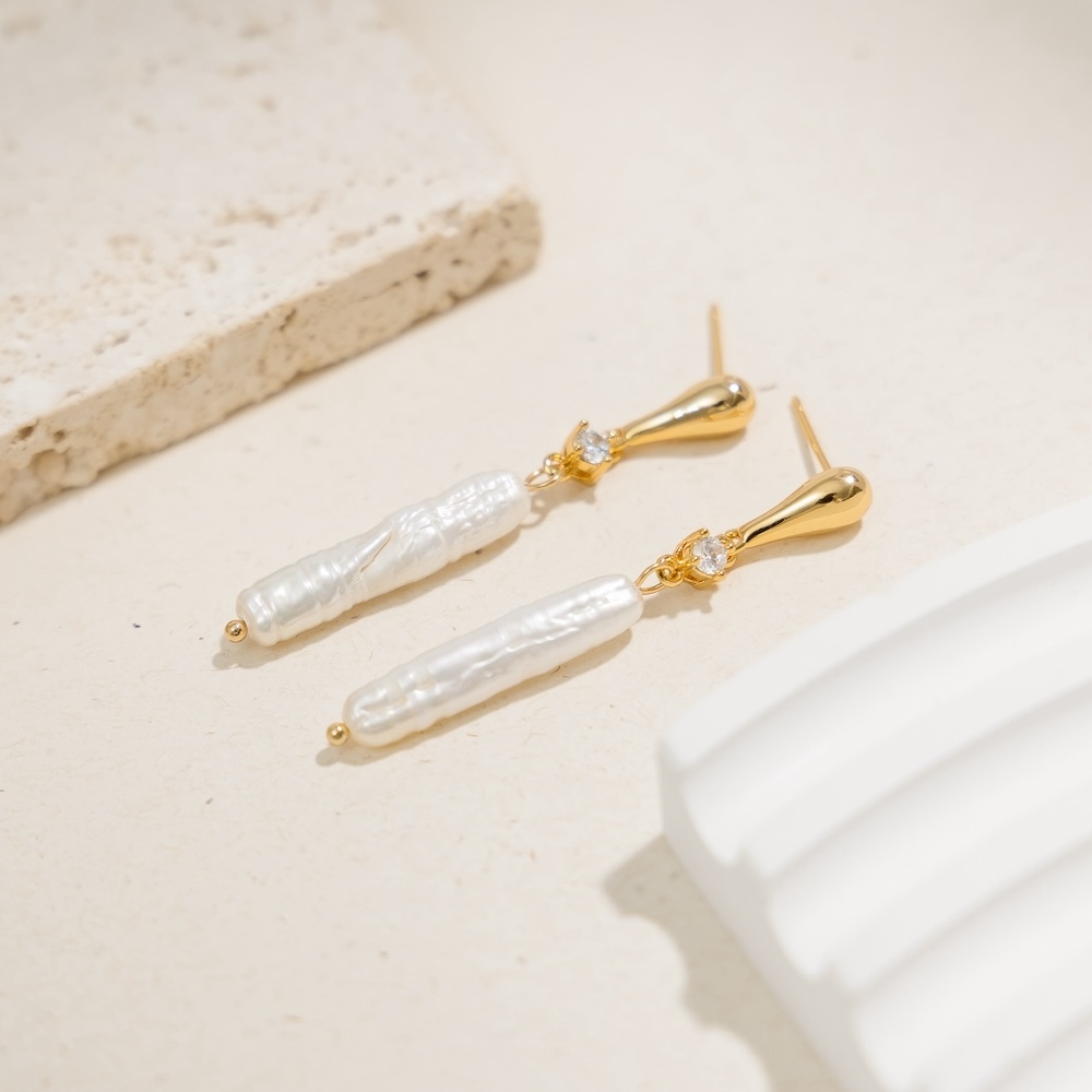 材質:銅鍍18k金、925純銀耳針、天然珍珠