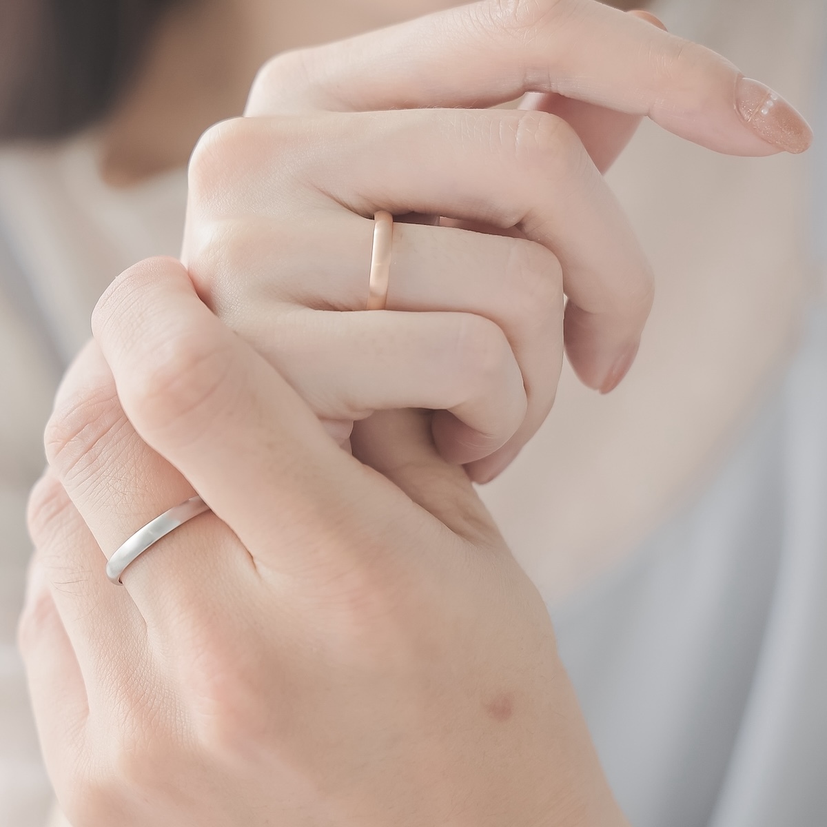 簡約細緻的素面戒款,溫潤弧線映照出每日相處的默契