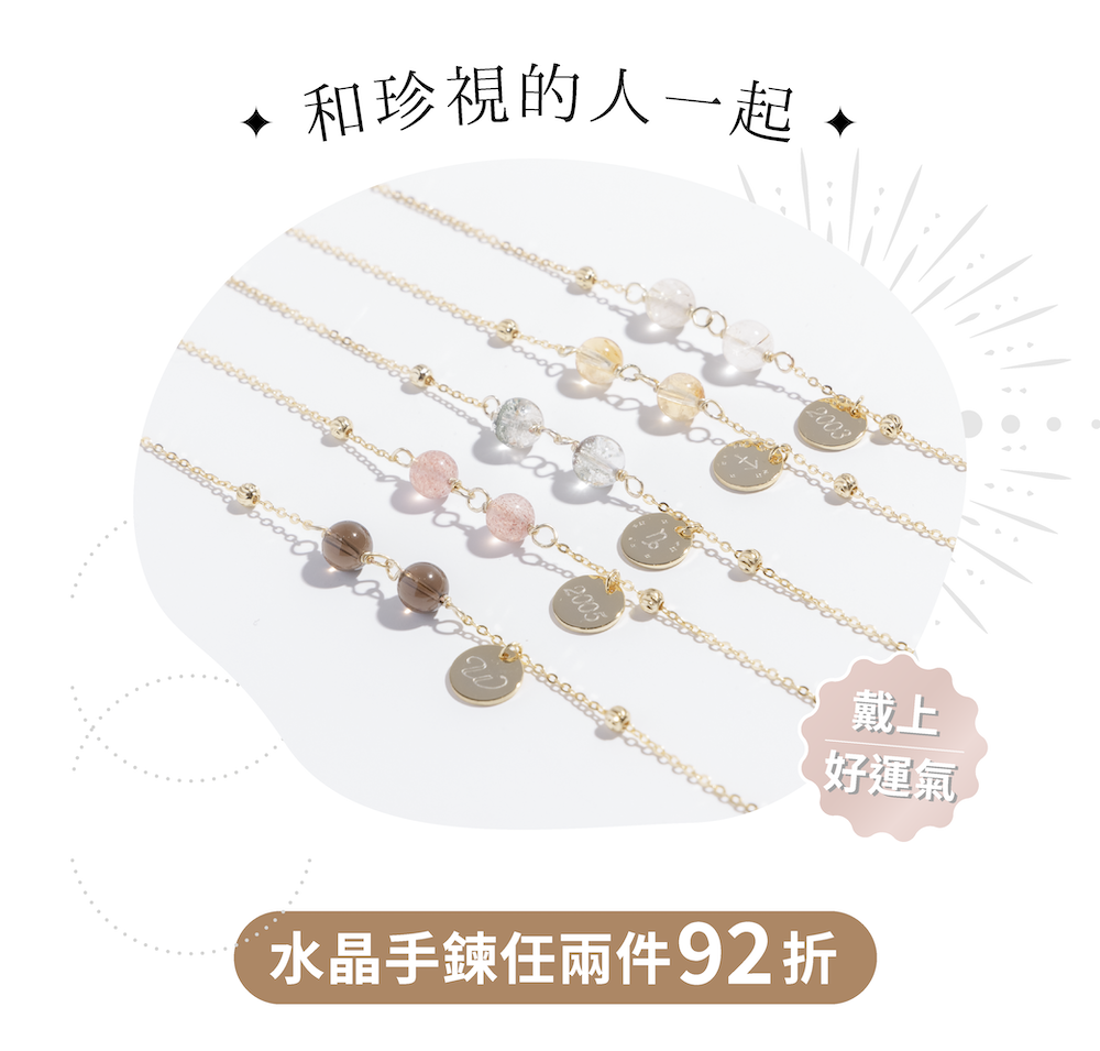 由命理師劉玓岡以五行規劃專屬五色,並賦予水晶能量,願你戴上祈遇能夠創造生活奇遇